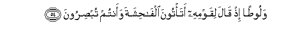 54. Walootan ith qala liqawmihi ata/toona alfahishata waantum tubsiroona