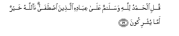 59. Quli alhamdu lillahi wasalamun AAala AAibadihi allatheena istafa allahu khayrun amma yushrikoona