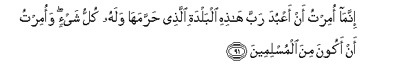 91. For me, I have been commanded to serve the Lord of this city, Him Who has sanctified it and to Whom (belong) all things: and I am commanded to be of those who bow in Islam to Allah.s Will,-