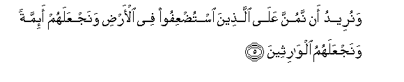 5. Wanureedu an namunna AAala allatheena istudAAifoo fee al-ardi wanajAAalahum a-immatan wanajAAalahumu alwaritheena