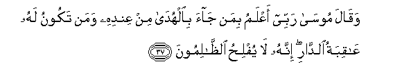 37. Waqala moosa rabbee aAAlamu biman jaa bialhuda min AAindihi waman takoonu lahu AAaqibatu alddari innahu la yuflihu alththalimoona