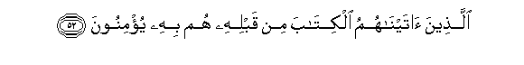 52. Allatheena ataynahumu alkitaba min qablihi hum bihi yu/minoona