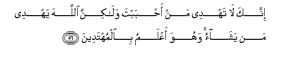 56. Innaka la tahdee man ahbabta walakinna Allaha yahdee man yashao wahuwa aAAlamu bialmuhtadeena