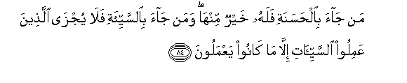84. Man jaa bialhasanati falahu khayrun minha waman jaa bialssayyi-ati fala yujza allatheena AAamiloo alssayyi-ati illa ma kanoo yaAAmaloona