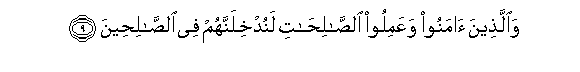 9. Waallatheena amanoo waAAamiloo alssalihati lanudkhilannahum fee alssaliheena