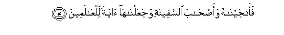 15. Faanjaynahu waas-haba alssafeenati wajaAAalnaha ayatan lilAAalameena
