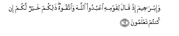 16. And (We also saved) Abraham: behold, he said to his people, "Serve Allah and fear Him: that will be best for you- If ye understand!