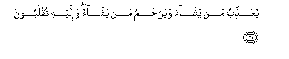 21. YuAAaththibu man yashao wayarhamu man yashao wa-ilayhi tuqlaboona