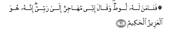 26. Faamana lahu lootun waqala innee muhajirun ila rabbee innahu huwa alAAazeezu alhakeemu