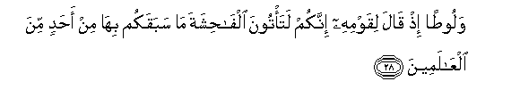 28. And (remember) Lut: behold, he said to his people: "Ye do commit lewdness, such as no people in Creation (ever) committed before you.