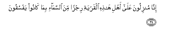 34. Inna munziloona AAala ahli hathihi alqaryati rijzan mina alssama-i bima kanoo yafsuqoona