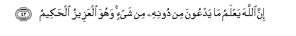 42. Verily Allah doth know of (every thing) whatever that they call upon besides Him: and He is Exalted (in power), Wise.
