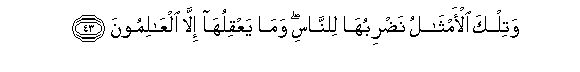 43. Watilka al-amthalu nadribuha lilnnasi wama yaAAqiluha illa alAAalimoona