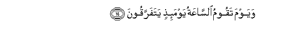 14. Wayawma taqoomu alssaAAatu yawma-ithin yatafarraqoona