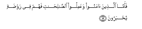 15. Faamma allatheena amanoo waAAamiloo alssalihati fahum fee rawdatin yuhbaroona