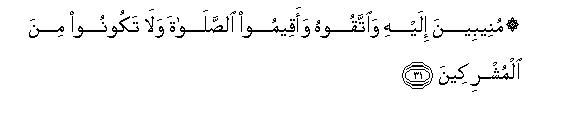 31. Muneebeena ilayhi waittaqoohu waaqeemoo alssalata wala takoonoo mina almushrikeena