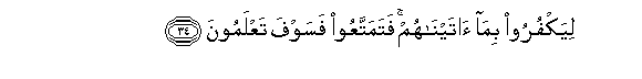 34. Liyakfuroo bima ataynahum fatamattaAAoo fasawfa taAAlamoona