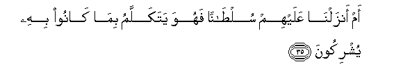 35. Am anzalna AAalayhim sultanan fahuwa yatakallamu bima kanoo bihi yushrikoona