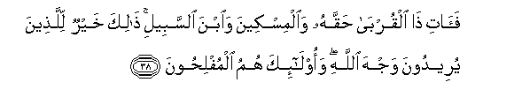 38. Faati tha alqurba haqqahu waalmiskeena waibna alssabeeli thalika khayrun lillatheena yureedoona wajha Allahi waola-ika humu almuflihoona