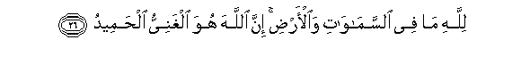 26. Lillahi ma fee alssamawati waal-ardi inna Allaha huwa alghaniyyu alhameedu