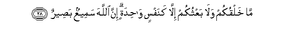 28. Ma khalqukum wala baAAthukum illa kanafsin wahidatin inna Allaha sameeAAun baseerun