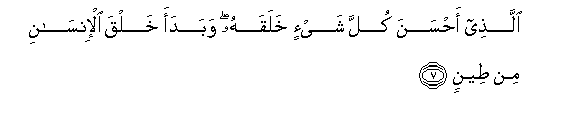 7. Allathee ahsana kulla shay-in khalaqahu wabadaa khalqa al-insani min teenin