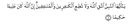 1. Ya ayyuha alnnabiyyu ittaqi Allaha wala tutiAAi alkafireena waalmunafiqeena inna Allaha kana AAaleeman hakeeman
