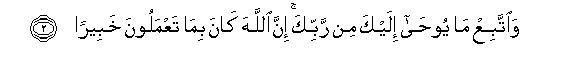 2. WaittabiAA ma yooha ilayka min rabbika inna Allaha kana bima taAAmaloona khabeeran