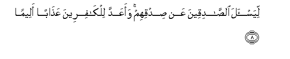 8. Liyas-ala alssadiqeena AAan sidqihim waaAAadda lilkafireena AAathaban aleeman