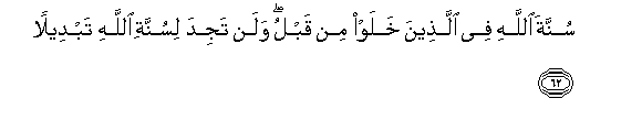 62. Sunnata Allahi fee allatheena khalaw min qablu walan tajida lisunnati Allahi tabdeelan