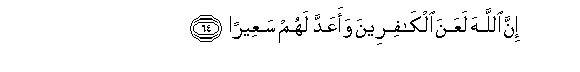 64. Inna Allaha laAAana alkafireena waaAAadda lahum saAAeeran