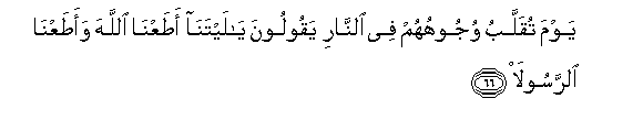66. Yawma tuqallabu wujoohuhum fee alnnari yaqooloona ya laytana ataAAna Allaha waataAAna alrrasoola
