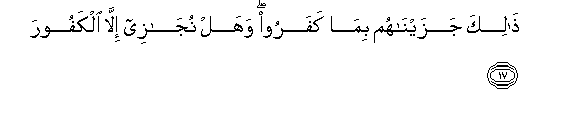 17. That was the Requital We gave them because they ungratefully rejected Faith: and never do We give (such) requital except to such as are ungrateful rejecters.