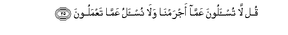 25. Say: "Ye shall not be questioned as to our sins, nor shall we be questioned as to what ye do."