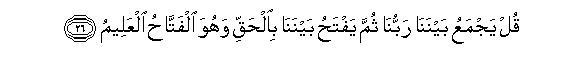 26. Qul yajmaAAu baynana rabbuna thumma yaftahu baynana bialhaqqi wahuwa alfattahu alAAaleemu