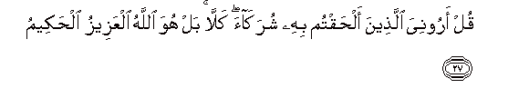27. Qul arooniya allatheena alhaqtum bihi shurakaa kalla bal huwa Allahu alAAazeezu alhakeemu