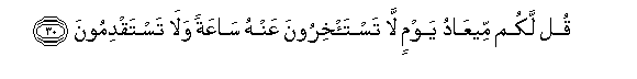 30. Qul lakum meeAAadu yawmin la tasta/khiroona AAanhu saAAatan wala tastaqdimoona