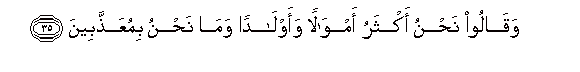 35. Waqaloo nahnu aktharu amwalan waawladan wama nahnu bimuAAaththabeena