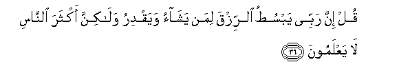 36. Say: "Verily my Lord enlarges and restricts the Provision to whom He pleases, but most men understand not."