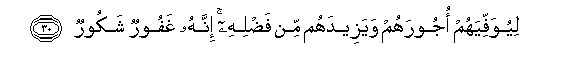 30. Liyuwaffiyahum ojoorahum wayazeedahum min fadlihi innahu ghafoorun shakoorun