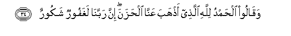 34. Waqaloo alhamdu lillahi allathee athhaba AAanna alhazana inna rabbana laghafoorun shakoorun
