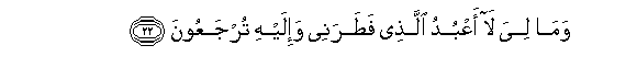 22. Wama liya la aAAbudu allathee fataranee wa-ilayhi turjaAAoona