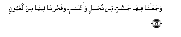 34. WajaAAalna feeha jannatin min nakheelin waaAAnabin wafajjarna feeha mina alAAuyooni