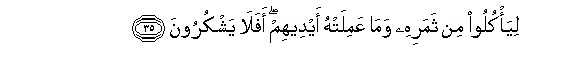 35. Liya/kuloo min thamarihi wama AAamilat-hu aydeehim afala yashkuroona