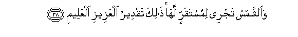 38. Waalshshamsu tajree limustaqarrin laha thalika taqdeeru alAAazeezi alAAaleemi