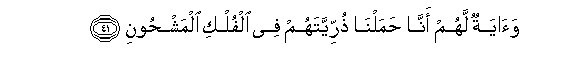 41. Waayatun lahum anna hamalna thurriyyatahum fee alfulki almashhooni
