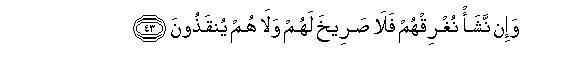 43. Wa-in nasha/ nughriqhum fala sareekha lahum wala hum yunqathoona
