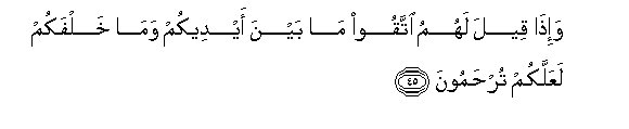 45. Wa-itha qeela lahumu ittaqoo ma bayna aydeekum wama khalfakum laAAallakum turhamoona