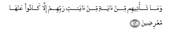 46. Wama ta/teehim min ayatin min ayati rabbihim illa kanoo AAanha muAArideena
