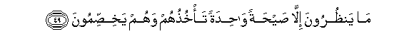 49. Ma yanthuroona illa sayhatan wahidatan ta/khuthuhum wahum yakhissimoona